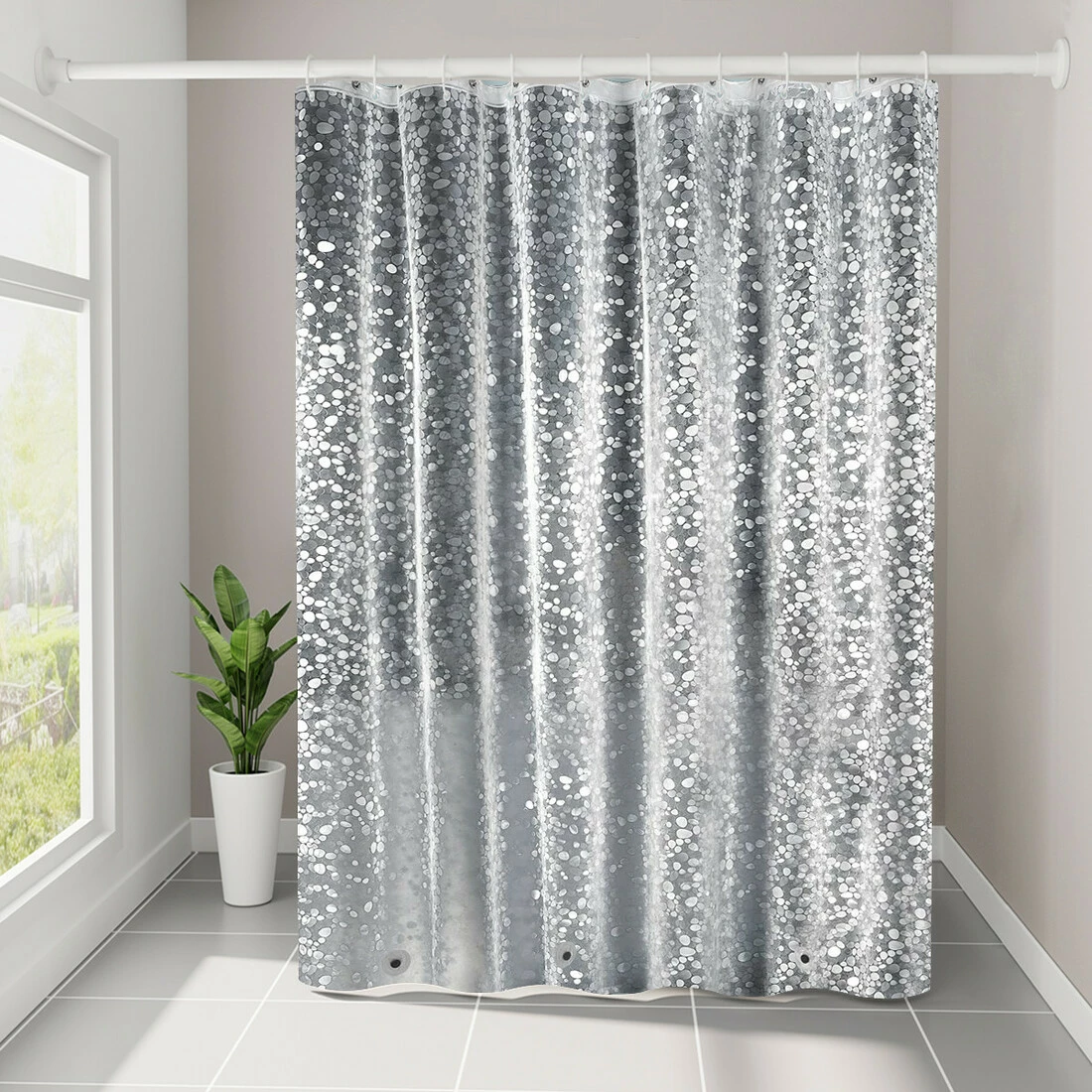 Шторка изготовлена из водоотталкивающего 100% материала PEVA,
