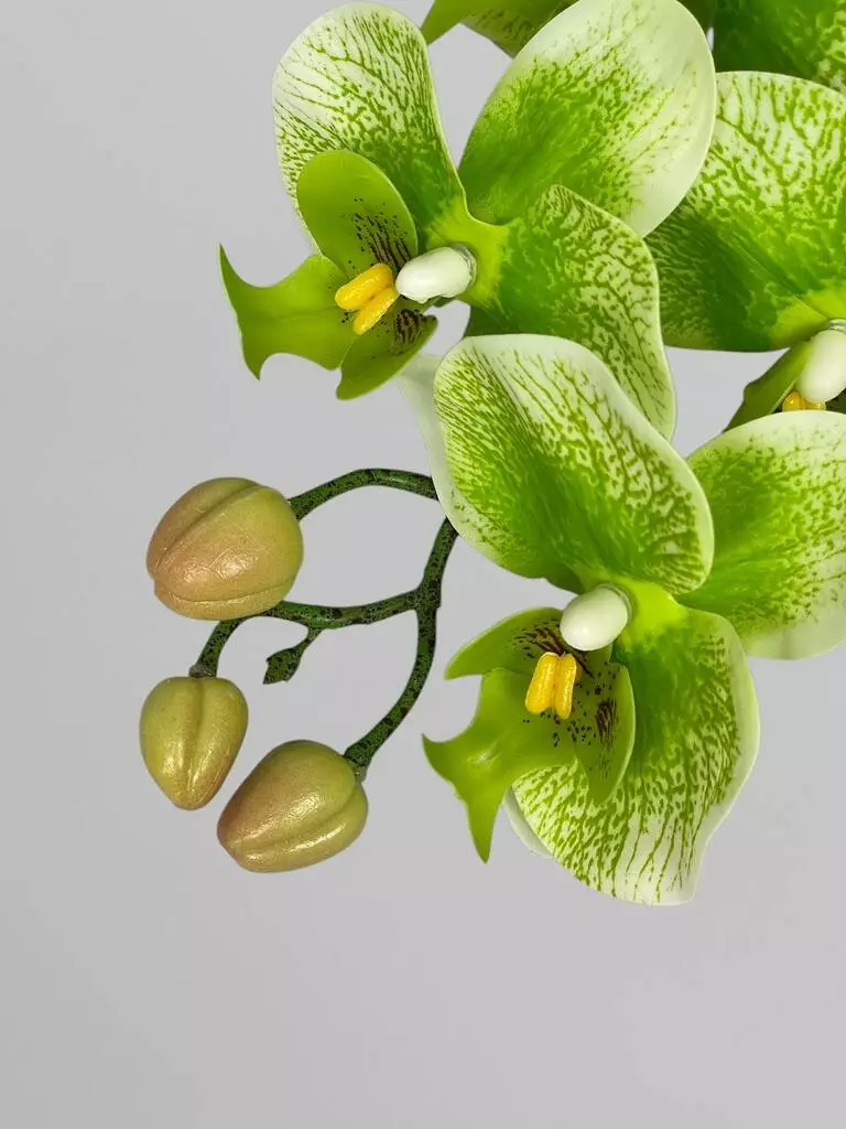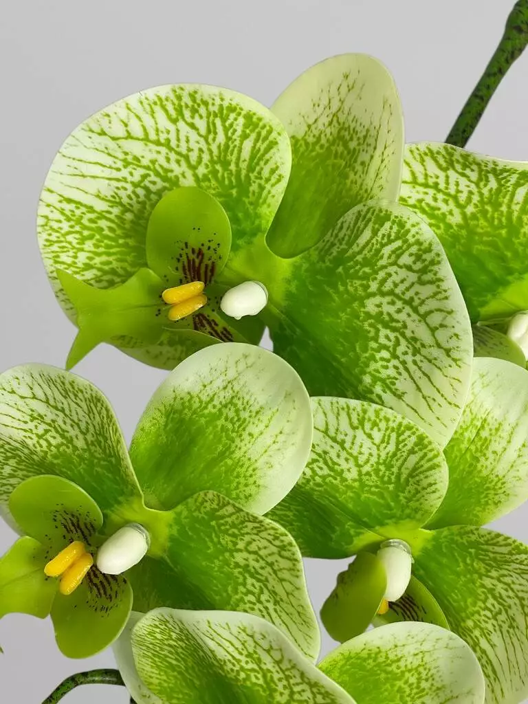 Штучна гілка орхідеї Фаленопсис 5 суцвіть, салатовий, 65 см