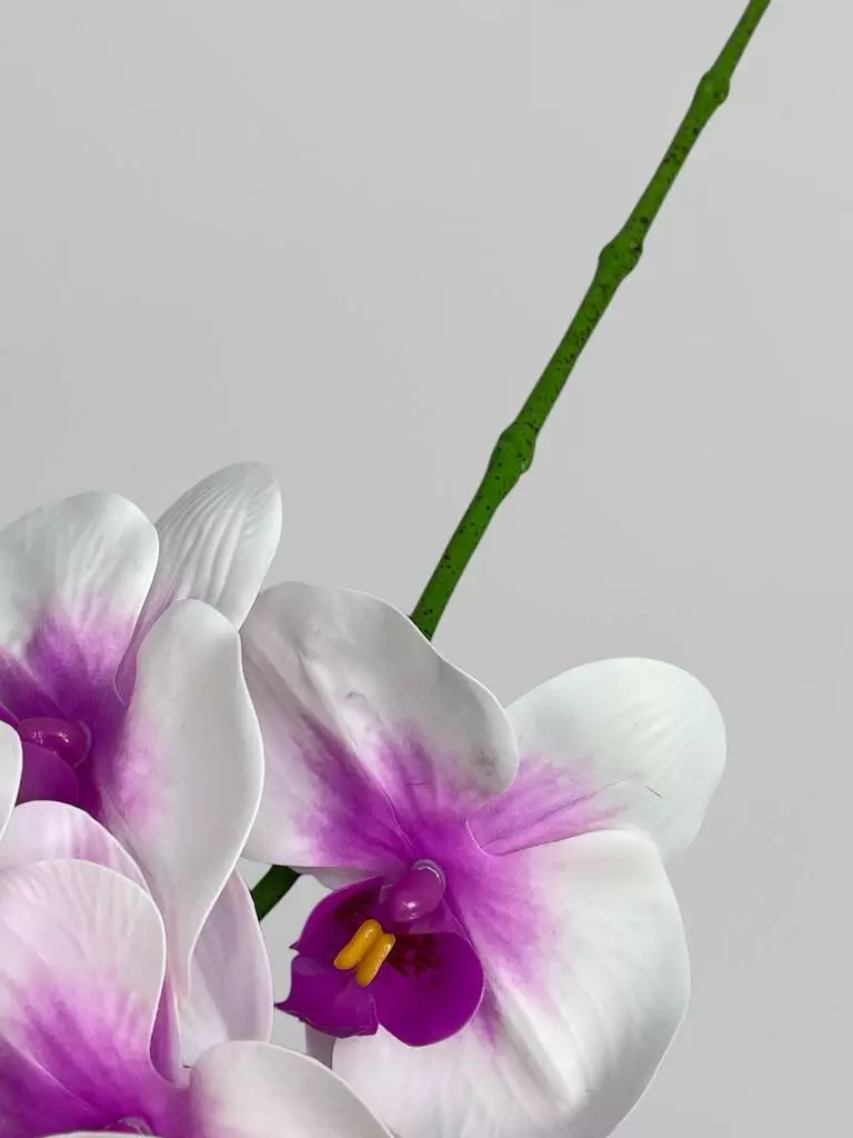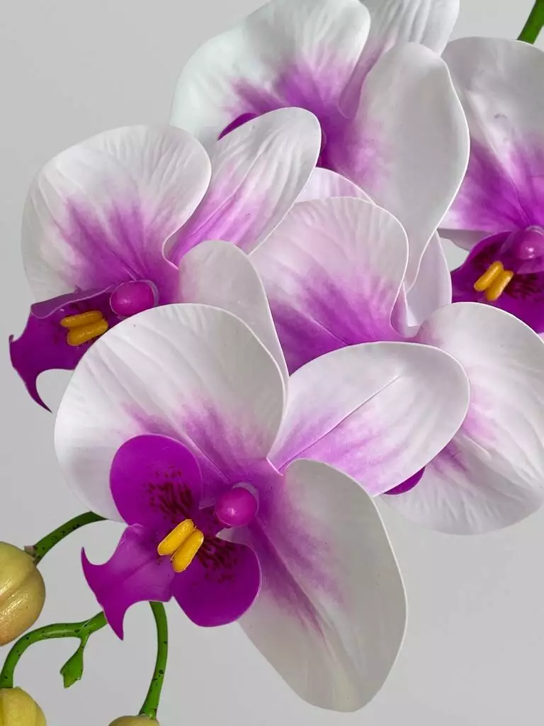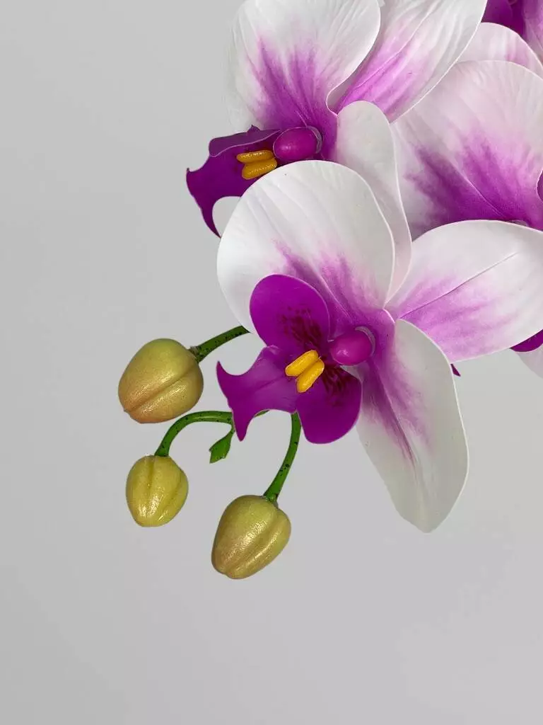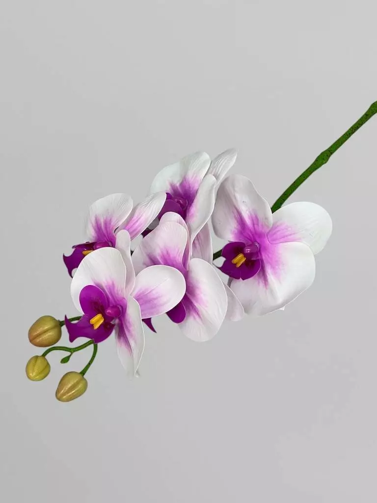 Штучна латексна орхідея Фаленопсис 5 суцвіть, білий з бузковим градієнтом, 65 см