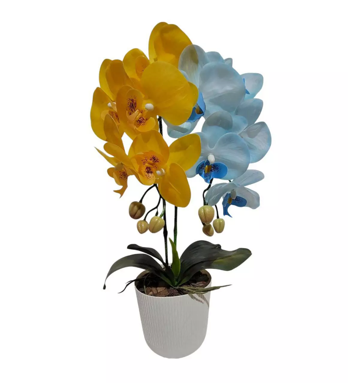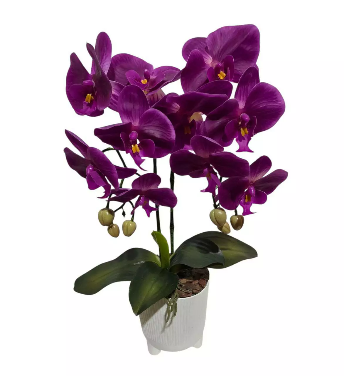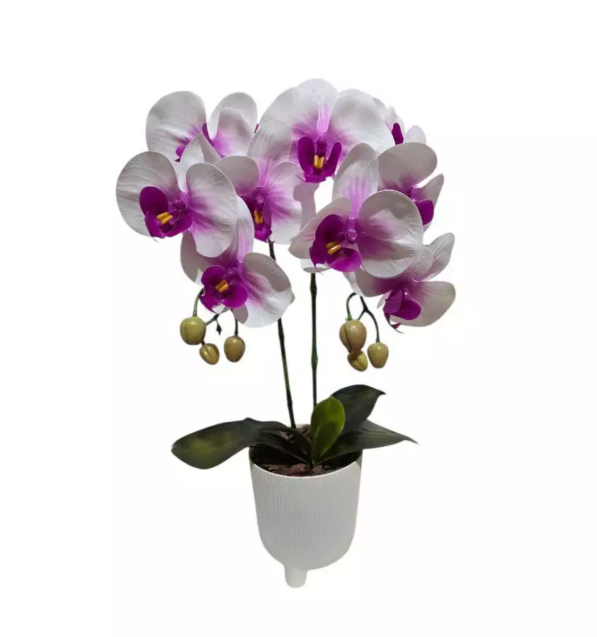 Штучна орхідея подвійна з латексу на 5 суцвіть у пластмасовому