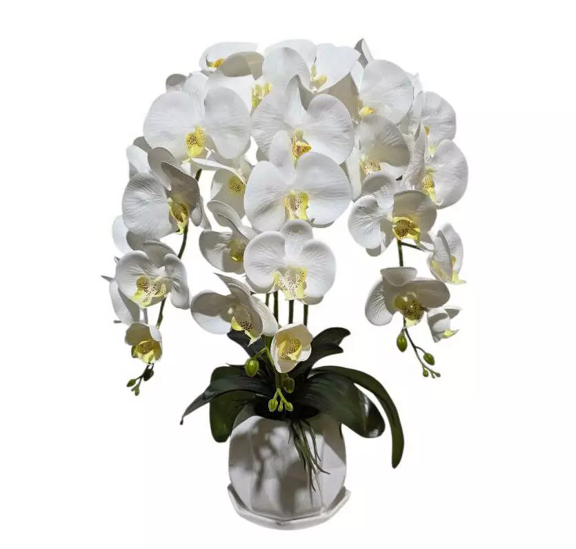 Штучна орхідея в горщику потрійна біла на 9 суцвіть 52*32см