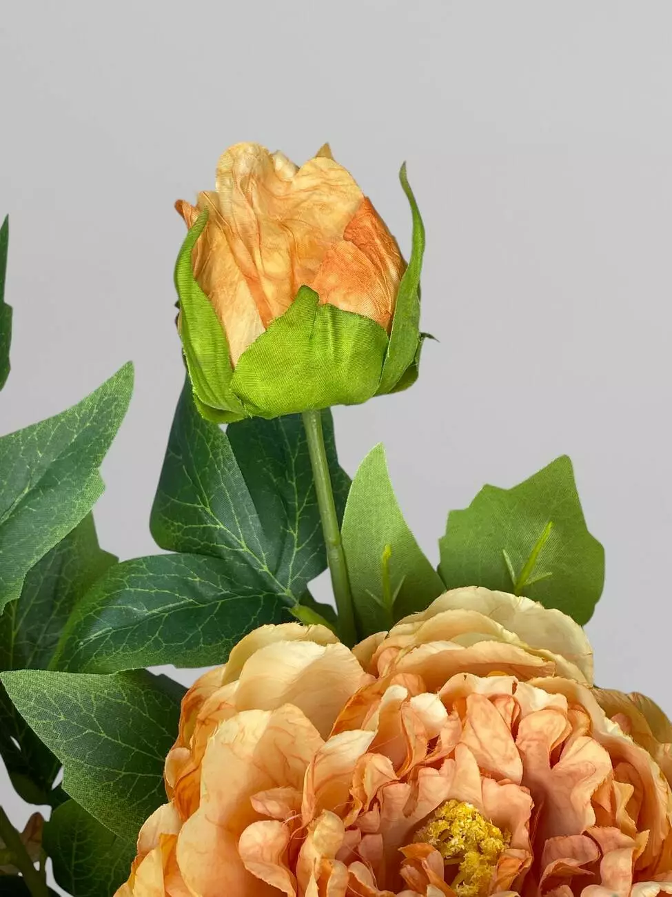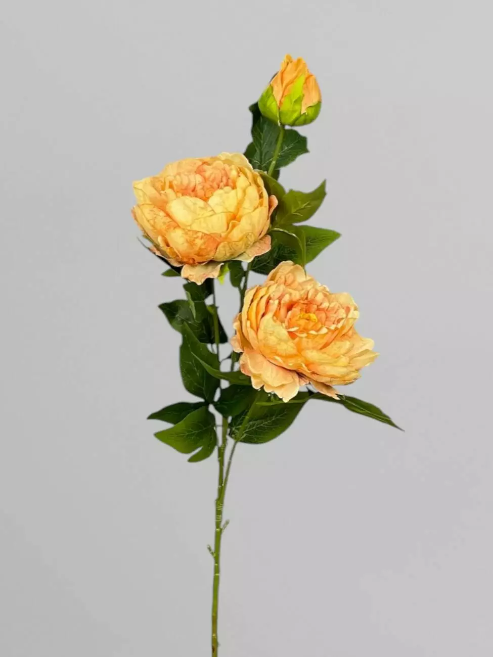 Штучна піоновидна троянда з листям і бутонами, жовтий, 85 см