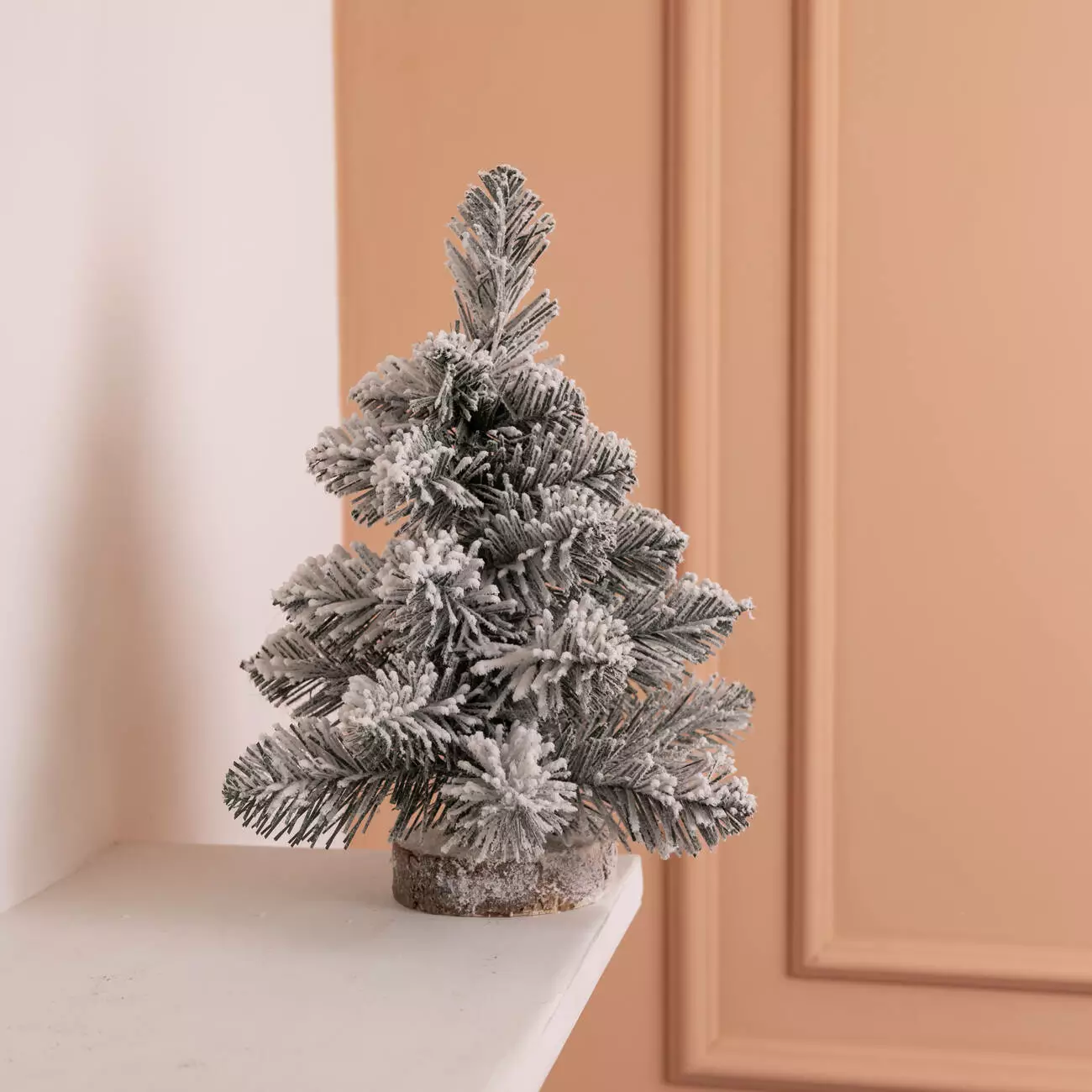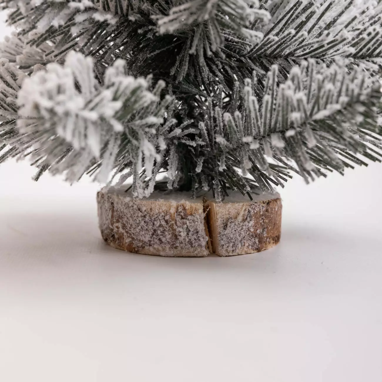 Гілки мають конічну форму та зелені голочки довжиною до 2,5 см, покриті м’яким штучним снігом. Завдяки цьому ялинка виглядає максимально натурально і передає атмосферу зимового лісу. Стовбур виготовлений із дроту, що робить конструкцію стійкою, а легка вага дозволяє без зусиль розмістити ялинку на столі, полиці або підвіконні.