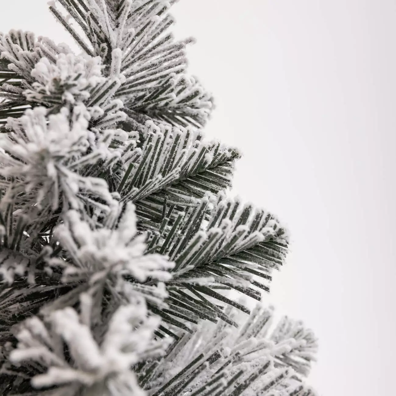 Ця модель оснащена однією секцією, що спрощує збірку та зберігання. Діаметр нижнього ряду гілок становить 23 см, а дерев’яна опора додає стабільності. Штучний сніг на гілках створює святковий настрій, а компактні розміри дозволяють використовувати ялинку як декоративний елемент у будь-якому інтер’єрі.