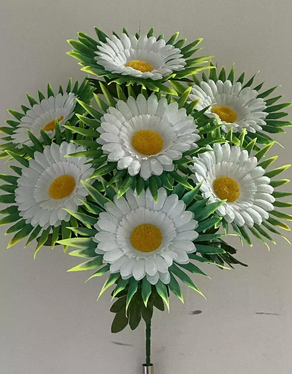 Штучні квіти оптом. Ромашка з листом Біла не прес