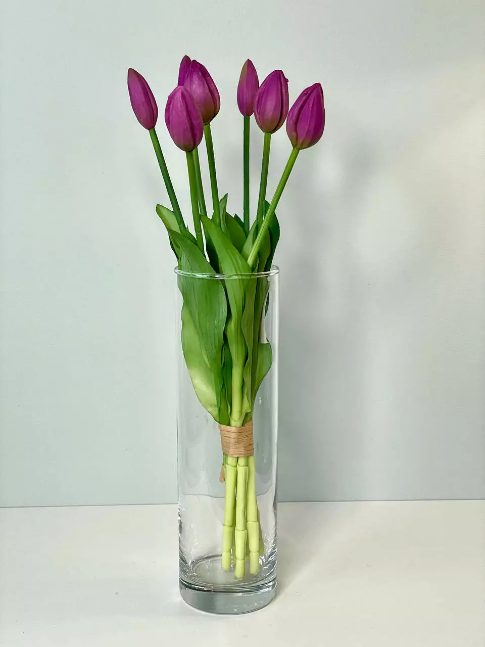 Завдяки високоякісному латексу, тюльпани мають реалістичний вигляд і приємну бархатисту текстуру. Гнучкі стебла дозволяють змінювати форму букета, адаптуючи його під будь-яку вазу чи квіткову композицію. Букет можна ставити у вазу з водою – і квіти виглядатимуть, як щойно зрізані!