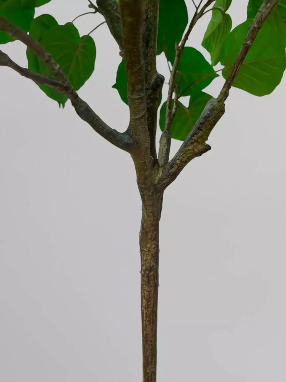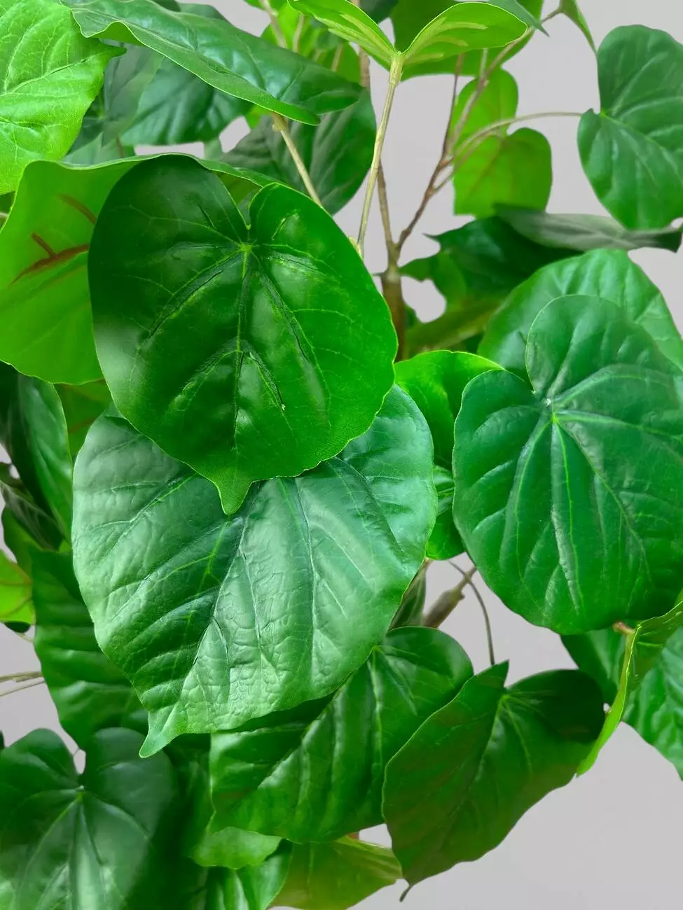 Реалістичні гілки та листя, виконані з якісного пластику, точно передають текстуру та колір живого фікуса. Завдяки дротяній основі ви зможете легко змінювати форму гілок, створюючи бажаний об’єм і вигляд. Зелене листя різних розмірів гармонійно розташоване по всій висоті, що надає рослині природного та елегантного вигляду.