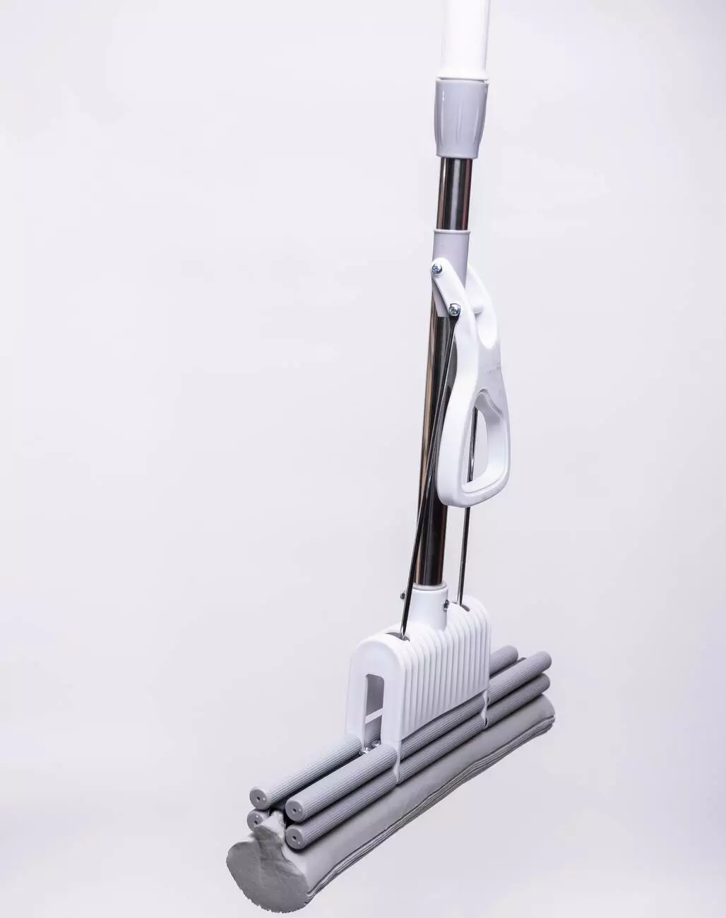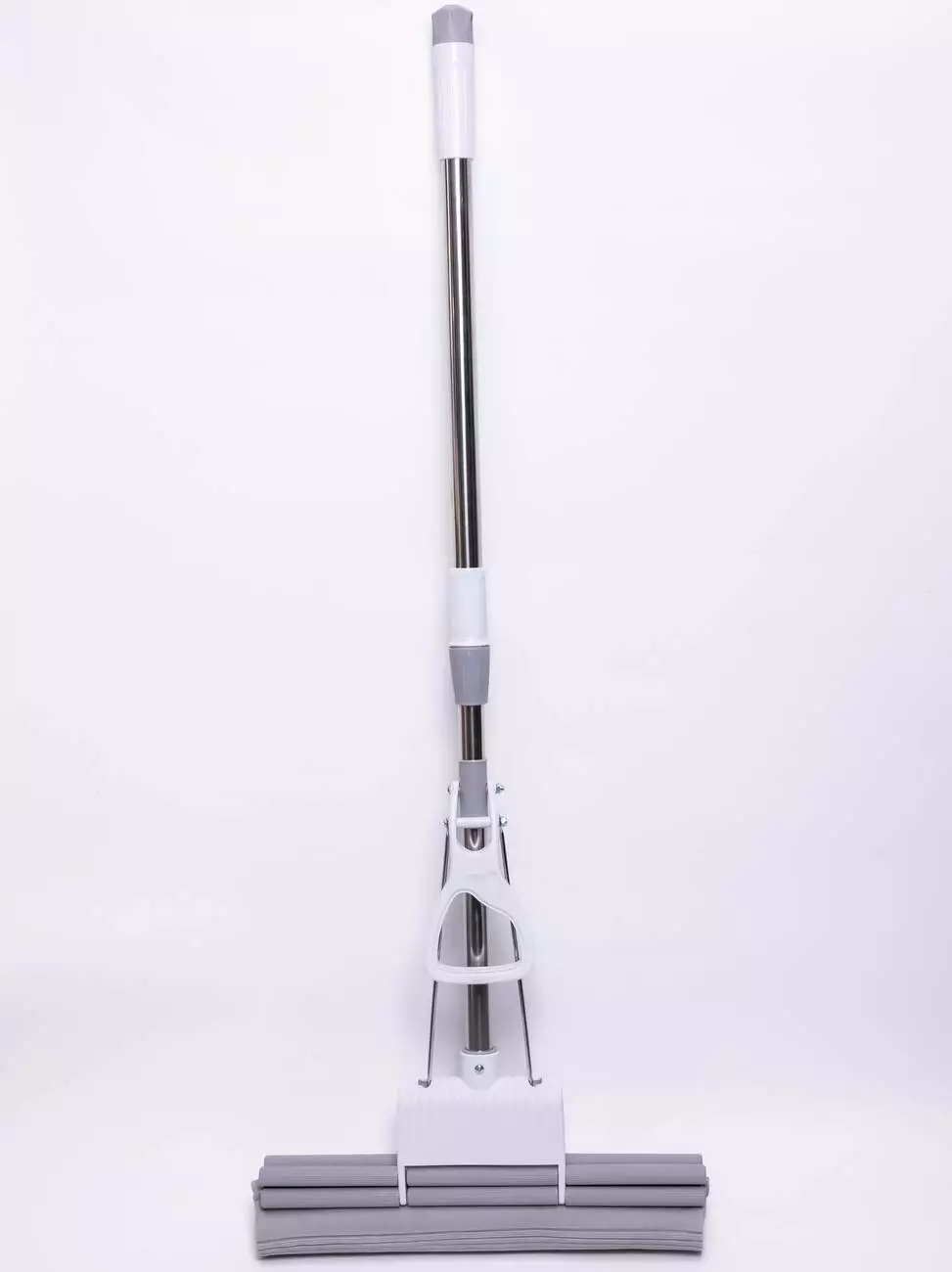 Швабра для підлоги з губчастою насадкою та роликовим віджимом – ефективний інструмент для вологого прибирання. Ручка виготовлена ​​з нержавіючої сталі, губчастий моп оснащений важільним механізмом для віджиму води. Швабра підходить для підлогових покриттів різного типу, серед яких плитка, ламінат та ін.