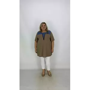Туніка із стрейчевого льону з гарною розтяжністю комбінована із джинсом. Силует трапеції.