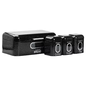 Всі предмети з набору виготовлені з нержавіючої сталі, яка не вбирає запахів, легко чиститься. Хлібниця оснащена відкидною кришкою, щільно закривається та дає можливість надовго зберегти свіжість хлібобулочних виробів та здоби.