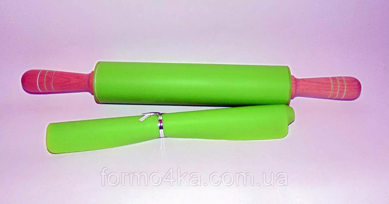 Силиконовая скалка с деревянными ручками для раскатки теста