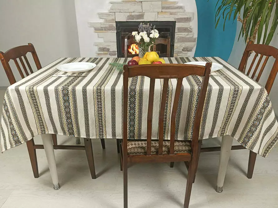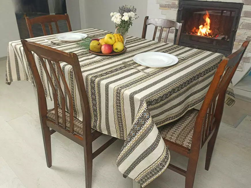 Скатертина на кухню лляна з орнаментом коричнева Коричневий, 180х145 см, + 6 серветок