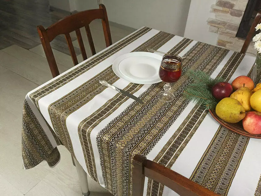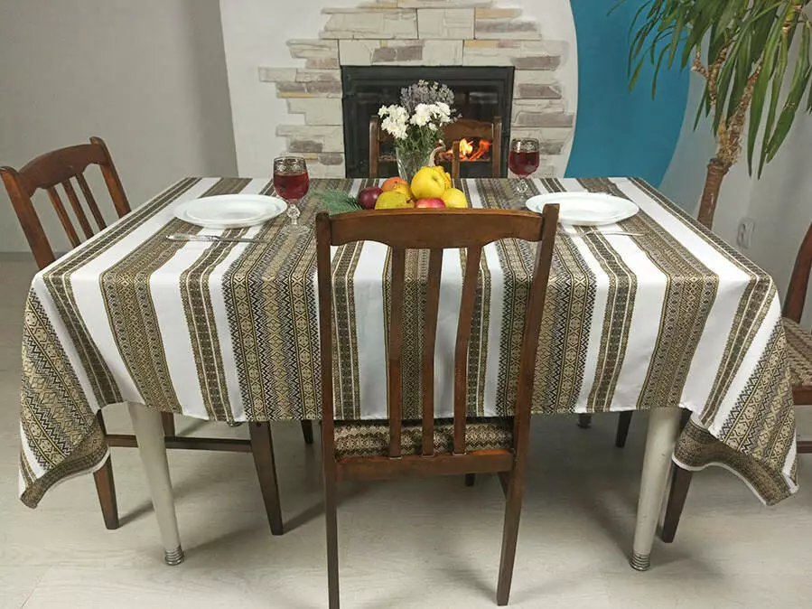 Скатертина з народним орнаментом 190х145 см, Скатертина, Коричневий