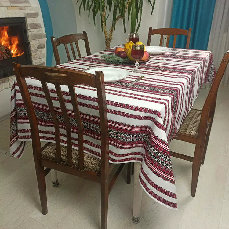 Скатертина з українською вишивкою 144, 6 + 6 серветок, 215х145 см, Червоний