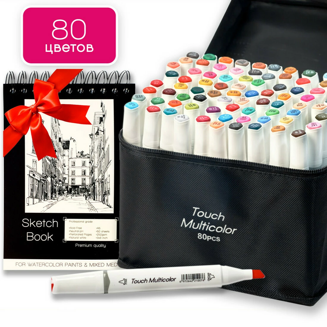 Вы покупаете Набор маркеров двусторонних Touch Multicolor 80 цветов и в подарок получаете Бумагу для скетчинга и рисования в формате А5.
