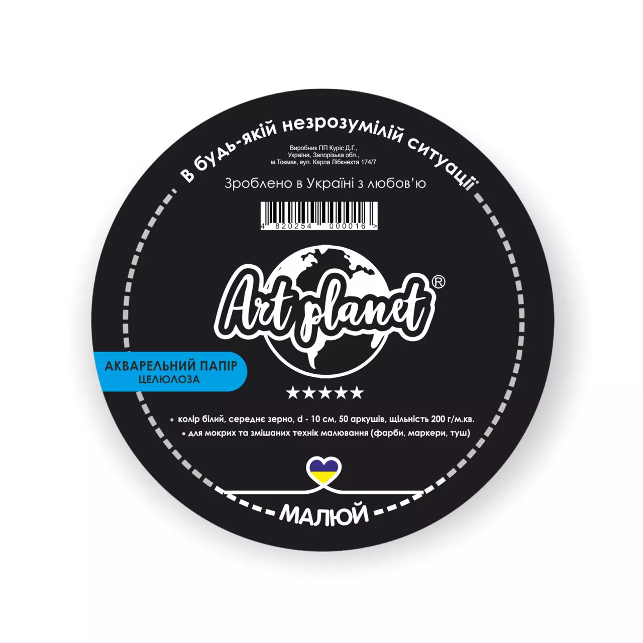 бумагой, диаметром 10 см с твердой подложкой от Art Planet на 50