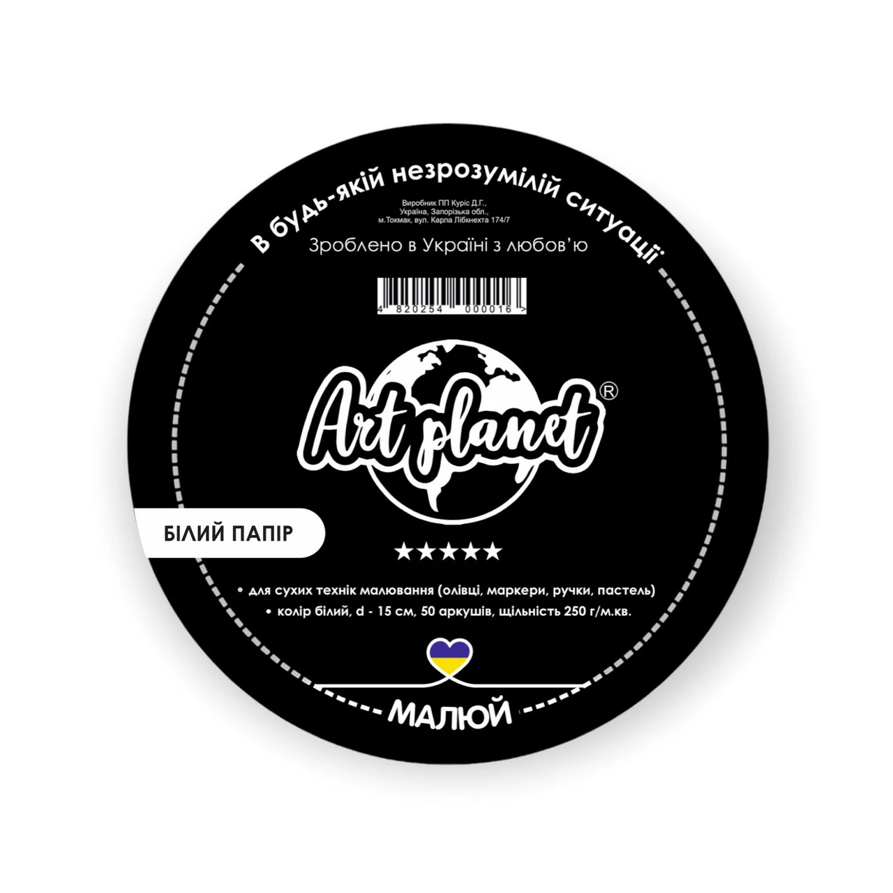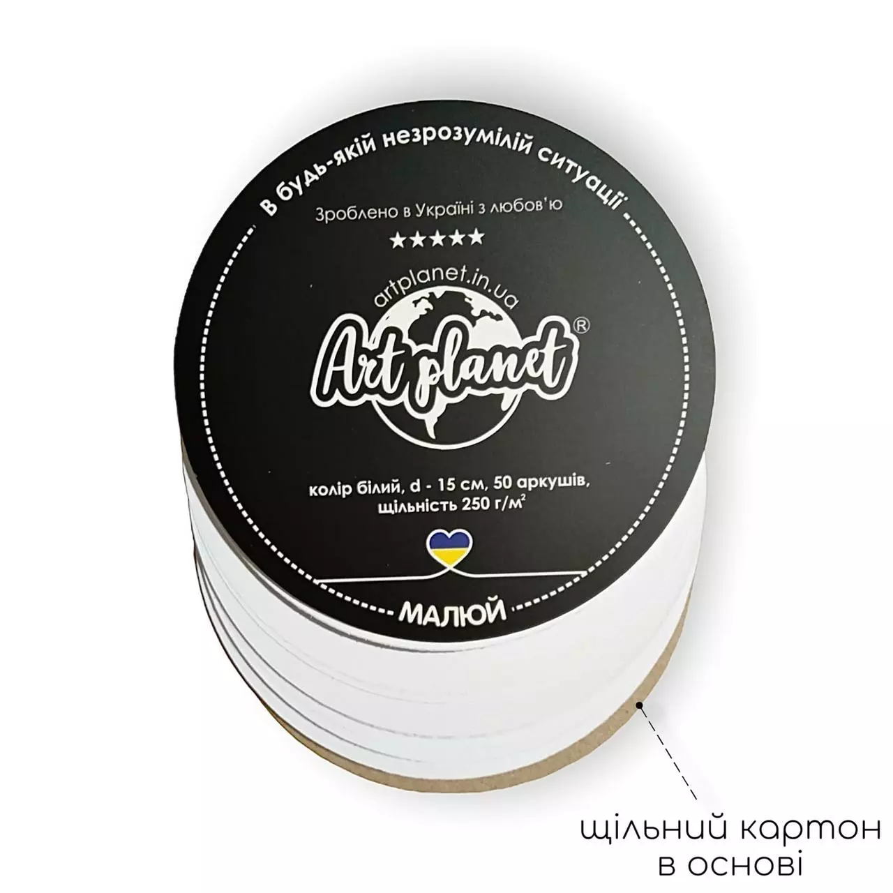 Тогда обратите внимание на фирменный круглый альбом, диаметром 15 см с твердой подложкой от Art Planet на 50 листов.
