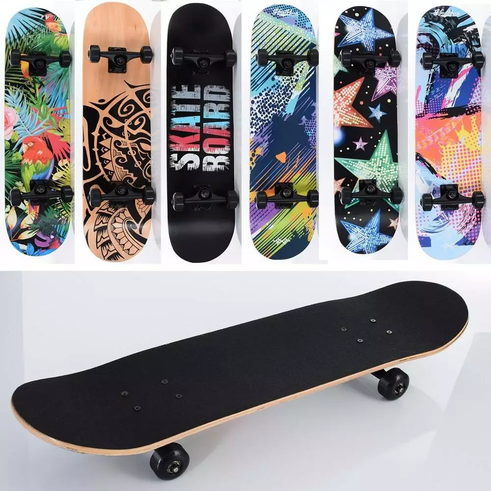 Фотография 1 товарной позиции интернет-магазина детских игрушек www.smarttoys.com.ua Скейт MS 0355-6 79-20см.(наждак), алюм.підвіска, колесаПУ-світло, підшип.ABEC-7, 6видів, розібр.