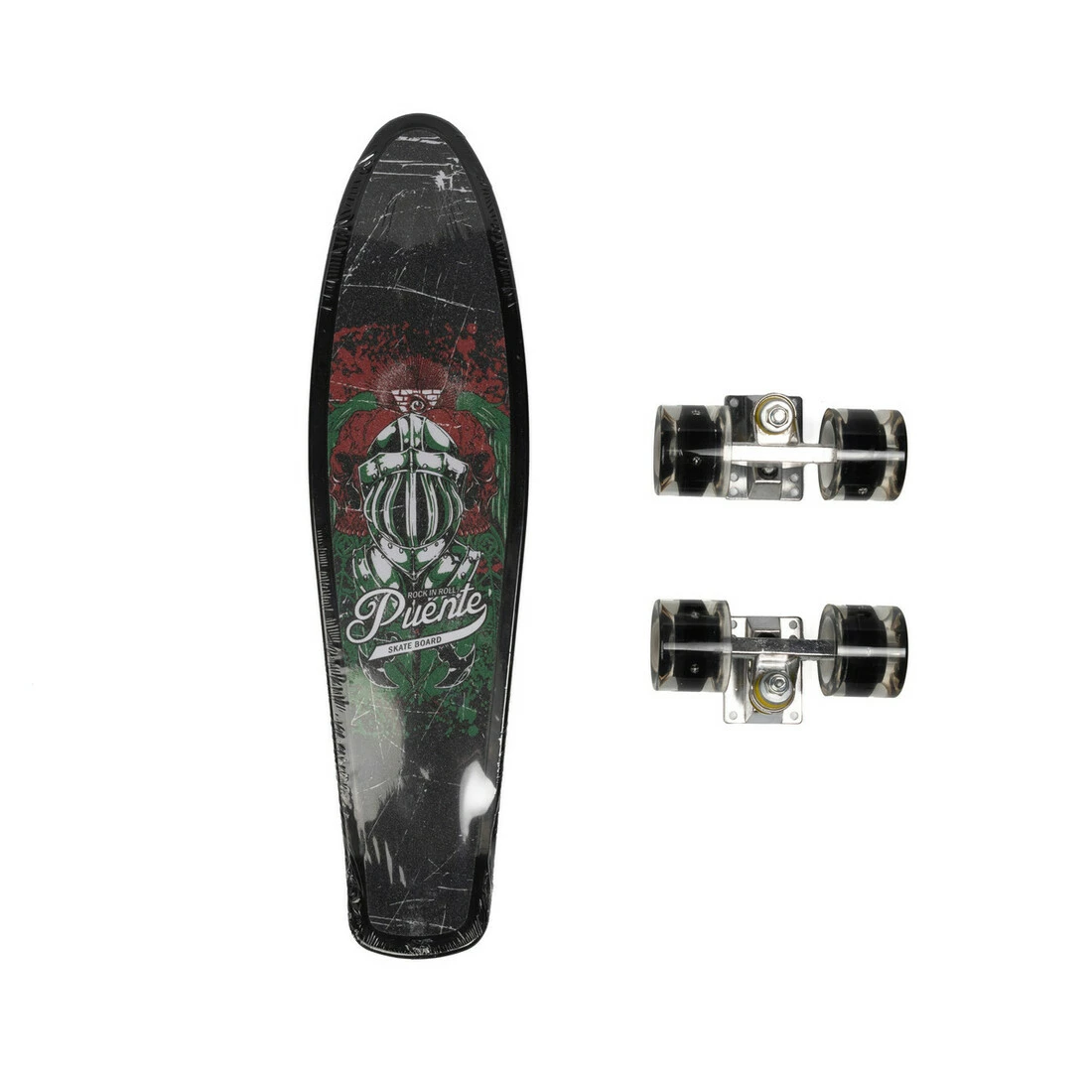 Головна перевага такого скейту це міцна алюмінієва підвіска яка забезпечить довготривалу службу та антиковзне покриття, яке мінімізує падіння.