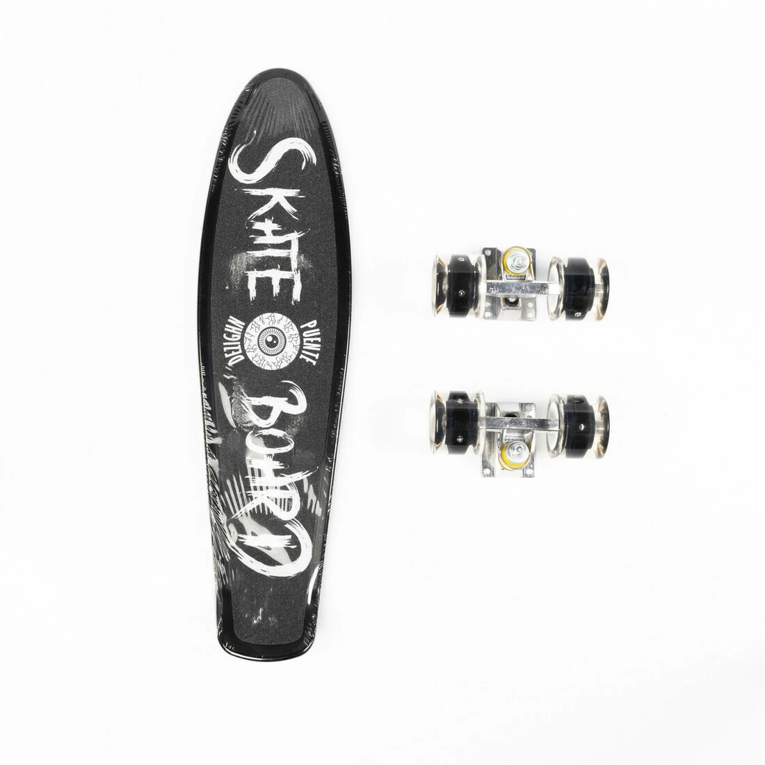 Дека скейту виготовлена із жорсткого пластику з антиковзною