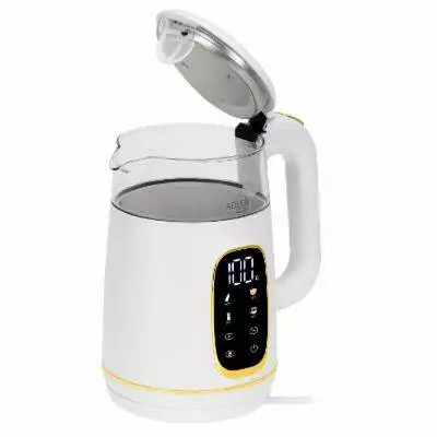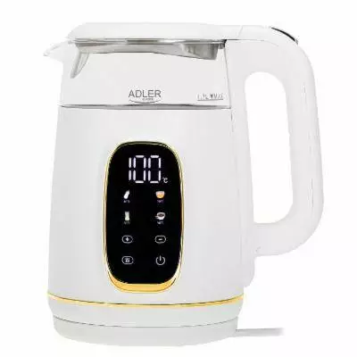 Скляний чайник зі світлодіодним підсвічуванням та контролем температури 1,7 л Adler AD 1305 white gold