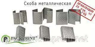 ООО Пакпринт является производителем металлических скоб. Производство позволяет изготавливать скрепы из металла толщиной 0,4 - 0,6 мм, ширина скобы варьируется от 10 до 19 мм.