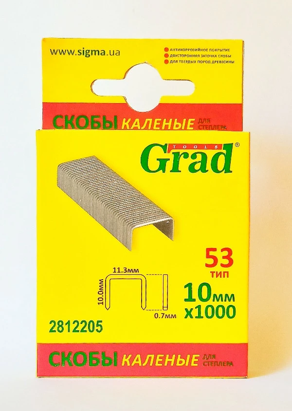 Скобы 10×11.3 мм каленые 1000шт GRAD (2812205) предназначены для