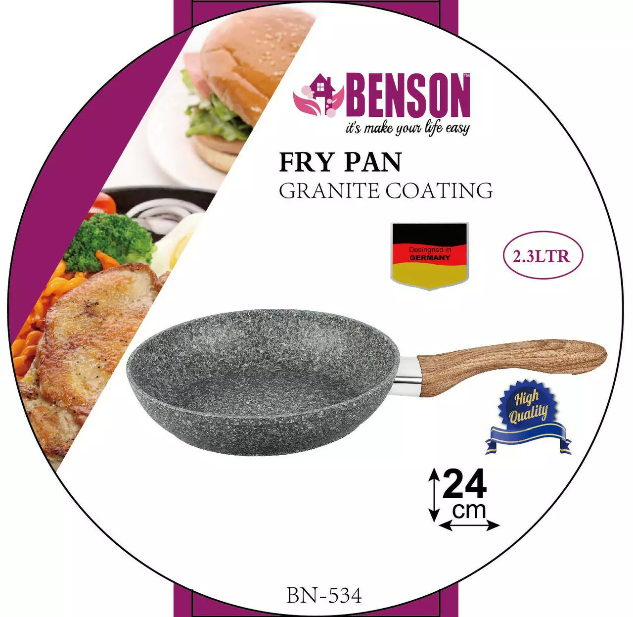Сковорідка 24 см гранітне покр. із сірим BENSON BN-534 (12 шт.)