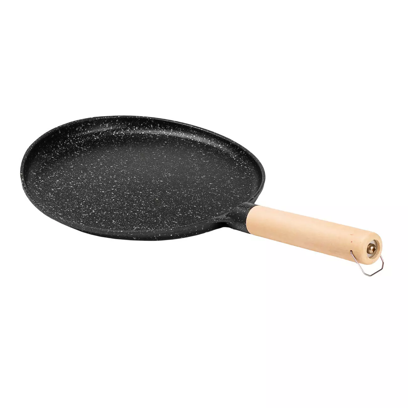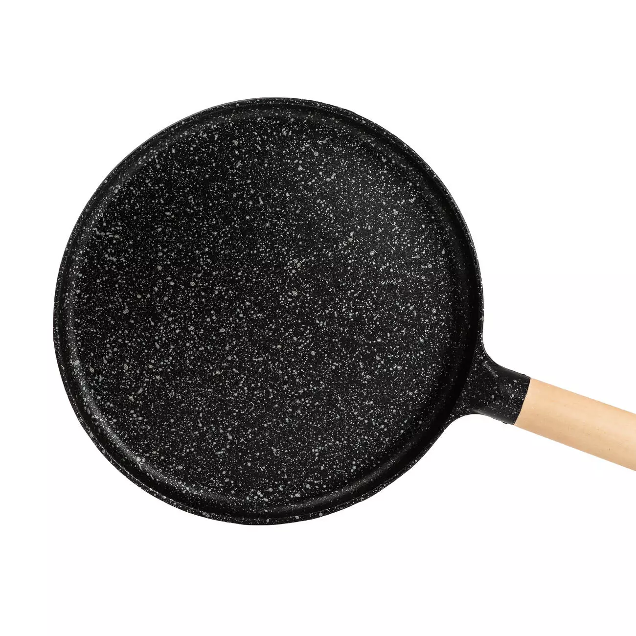 Сковорода має довгу ручку з бакеліту, яка не нагрівається та виключає ризик обпектися. Бортики різної висоти забезпечують зручний розподіл тіста та знімання готових млинців.