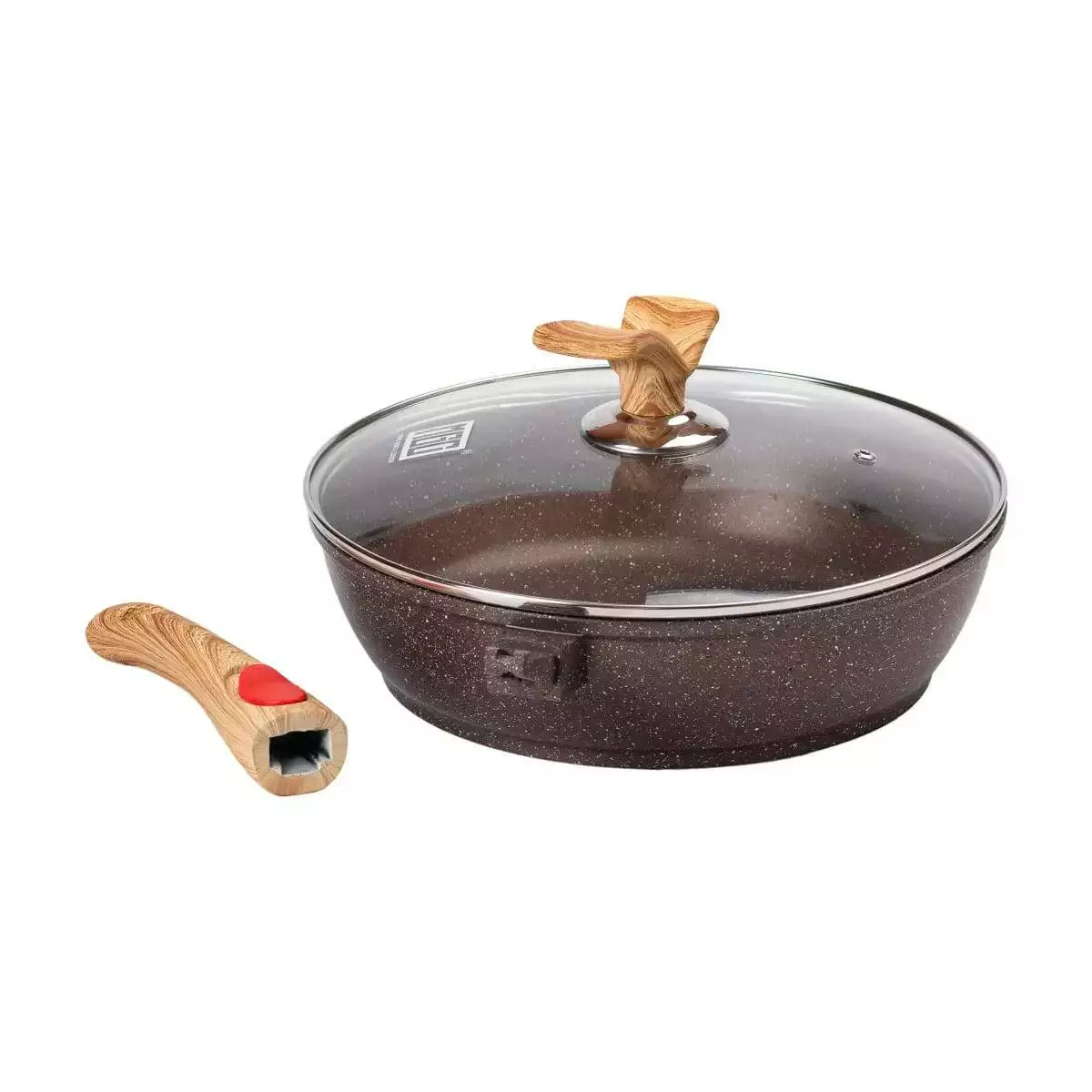 Для зручності використання посуд має знімну бакелітову ручку, яка