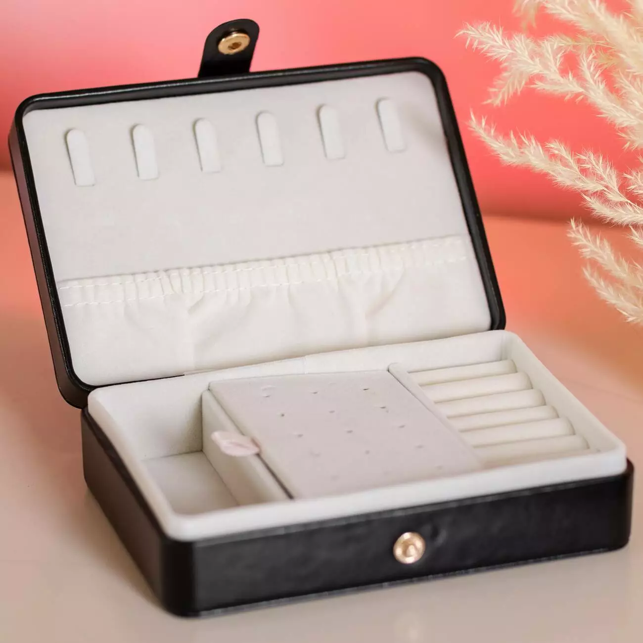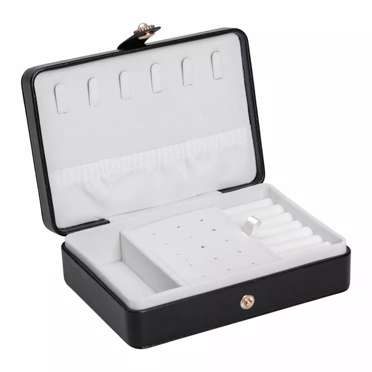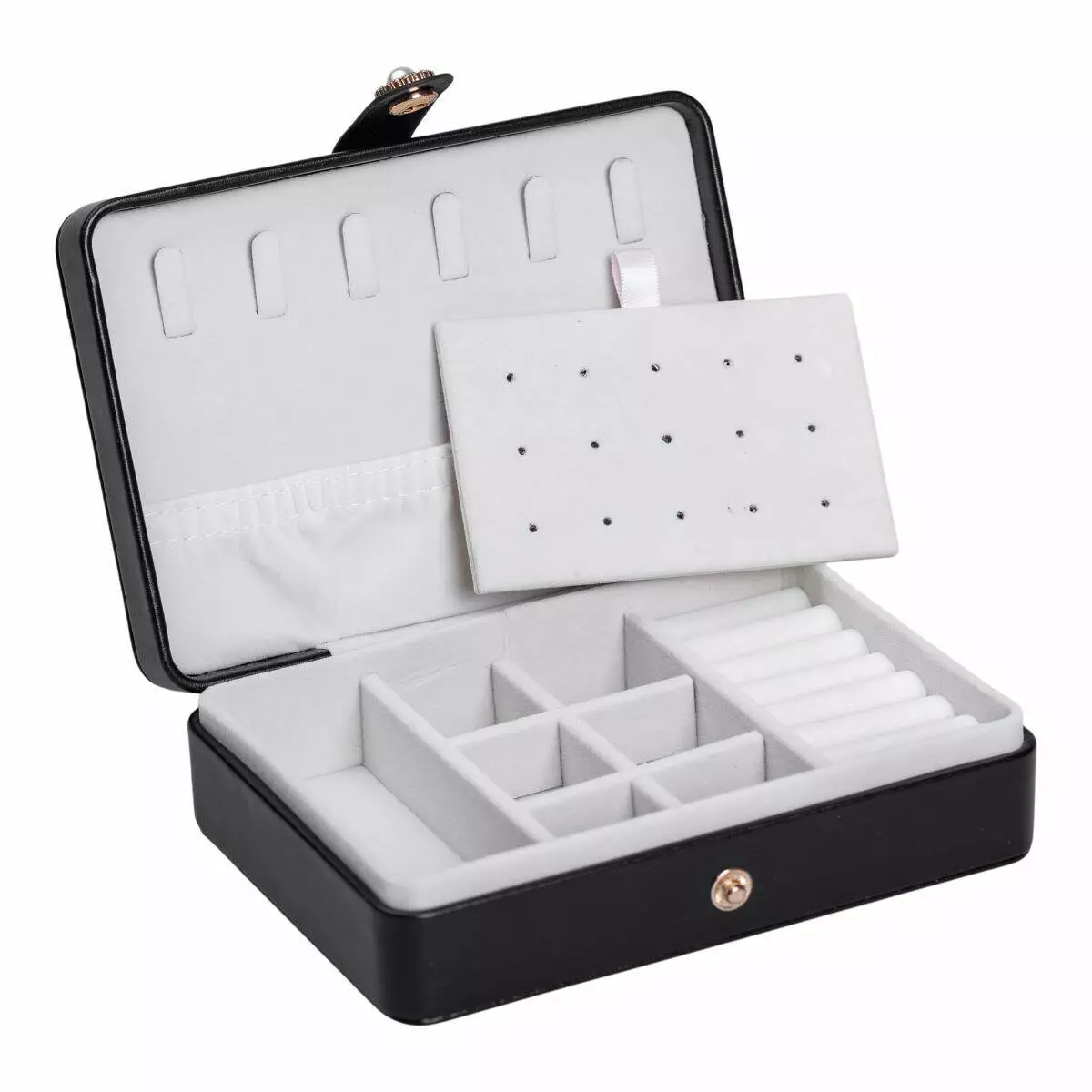 Скринька-органайзер для прикрас розміром 16х11х4,7 см - компактне та стильне рішення для зберігання різноманітних аксесуарів. Скринька має 8 відсіків, завдяки чому можна зручно розмістити каблучки, сережки, ланцюжки. Також передбачена окрема планшетка для пусетів та кафф, що дає можливість ефективно організувати парні та штучні сережки. Внутрішнє оздоблення виконане з велюру і відмінно підходить для перлів, каміння, дорогоцінних металів та біжутерії.