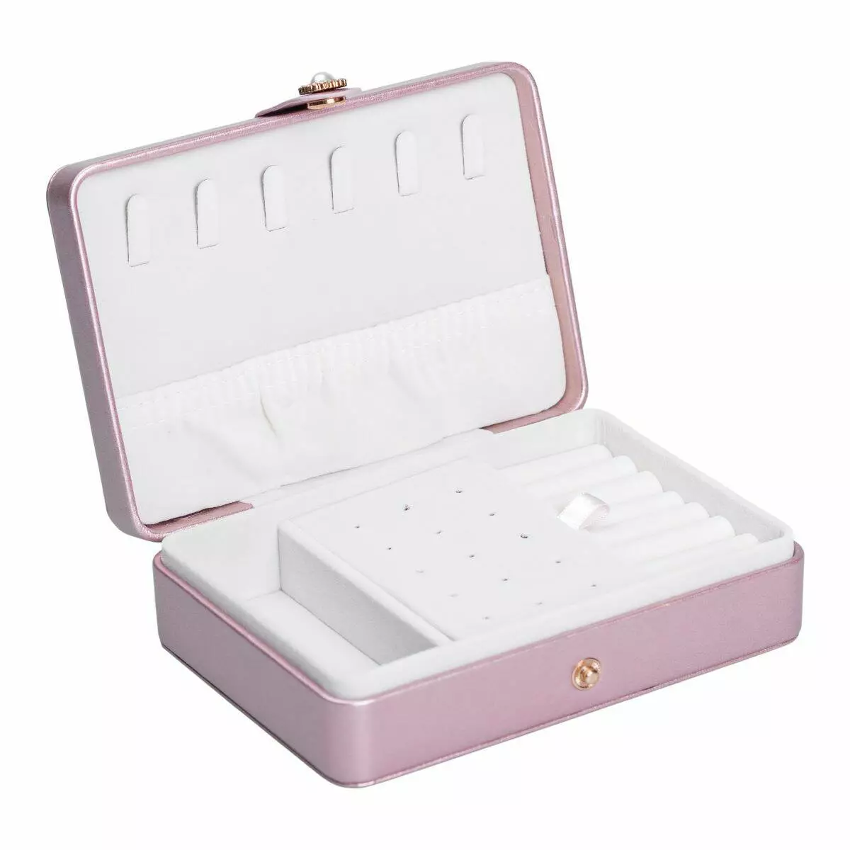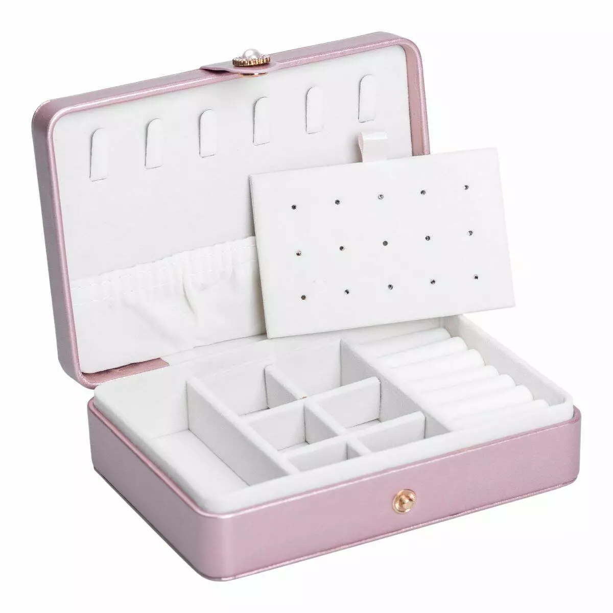 Скринька-органайзер для прикрас розміром 16х11х4,7 см - компактне та стильне рішення для зберігання різноманітних аксесуарів. Скринька має 8 відсіків, завдяки чому можна зручно розмістити каблучки, сережки, ланцюжки. Також передбачена окрема планшетка для пусетів та кафф, що дає можливість ефективно організувати парні та штучні сережки. Внутрішнє оздоблення виконане з велюру і відмінно підходить для перлів, каміння, дорогоцінних металів та біжутерії.