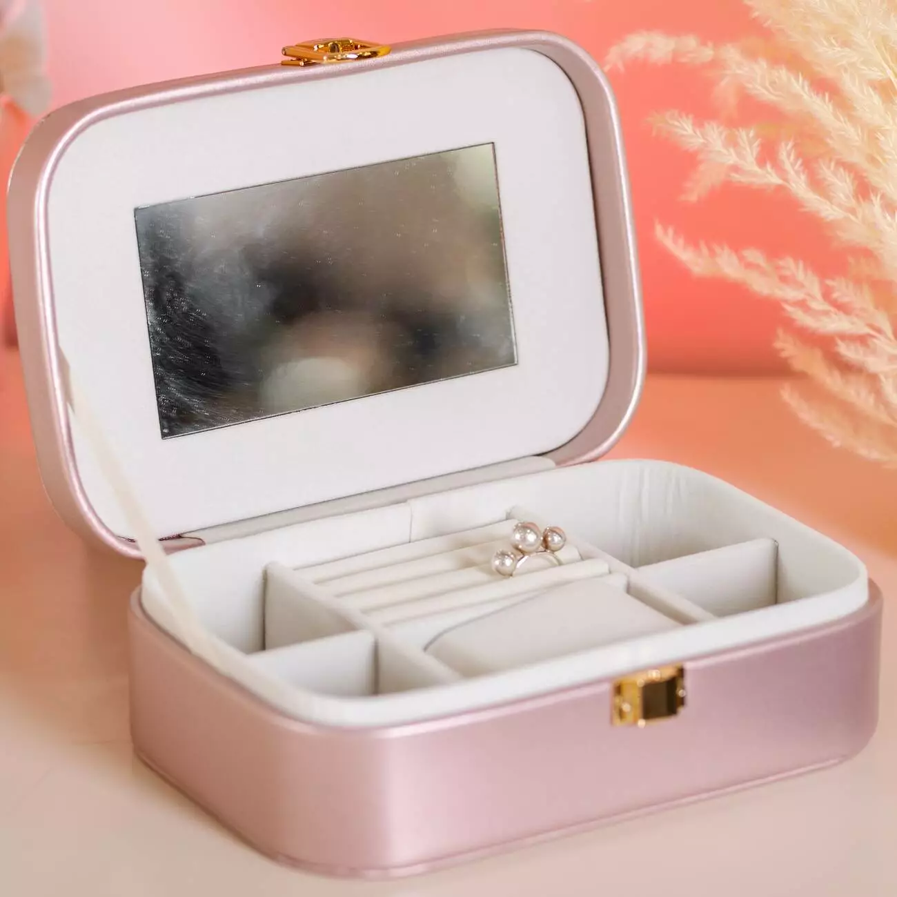 Органайзер доповнений дзеркалом у кришці, що робить його використання ще зручнішим. Скринька щільно закривається, є накидний замок, що запобігає випадковому відкриванню.