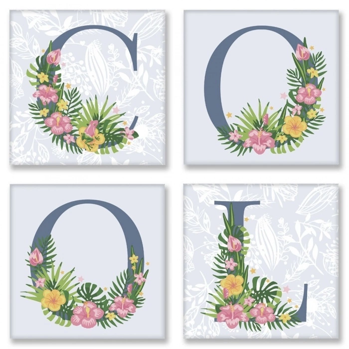 Додайте затишок у свою оселю! Малюйте чудові квіткові слова за номерами і додавайте сенсу вашому інтер'єру. Кожна буква розміщена на окремому полотні з кольоровим фоном — ви можете скласти ексклюзивну композицію на свій смак. Обирайте ніжні Провансові мотиви, Скандинавську лаконічність або Лофтовий контраст. Склад набору: -4 полотна з кольоровим фоном на підрамниках 18*18. На кожному полотні розміщені контури букви в квітковому оформленні з номерами під розмальовку. - 2 пензлики (середній та маленький) - Набір акрилових пронумерованих фарб - Контрольний лист - Інструкція
