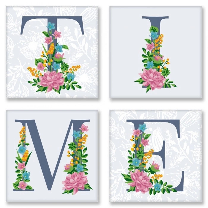 Додайте затишок в свою оселю! Малюйте чудові квіткові слова за номерами і додавайте сенсу вашого інтер'єру. Кожна буква розташована на окремому полотні з кольоровим фоном - ви зможете скласти ексклюзивну композицію на свій смак. Вибирайте ніжні мотиви Провансу, Скандинавську лаконічність або лофтового контраст.   Склад набору: -4 полотна з кольоровим фоном на підрамниках 18 * 18. На кожному полотні розміщені контури букви в квітковому оформленні з номерами під розмальовку. - 2 пензлика (середня і маленька) - Набір акрилових пронумерованих фарб - Перелік пунктів - Інструкція   КОЖЕН НАБІР оформлений в подарункову обгортку З РУЧКОЮ !!!!