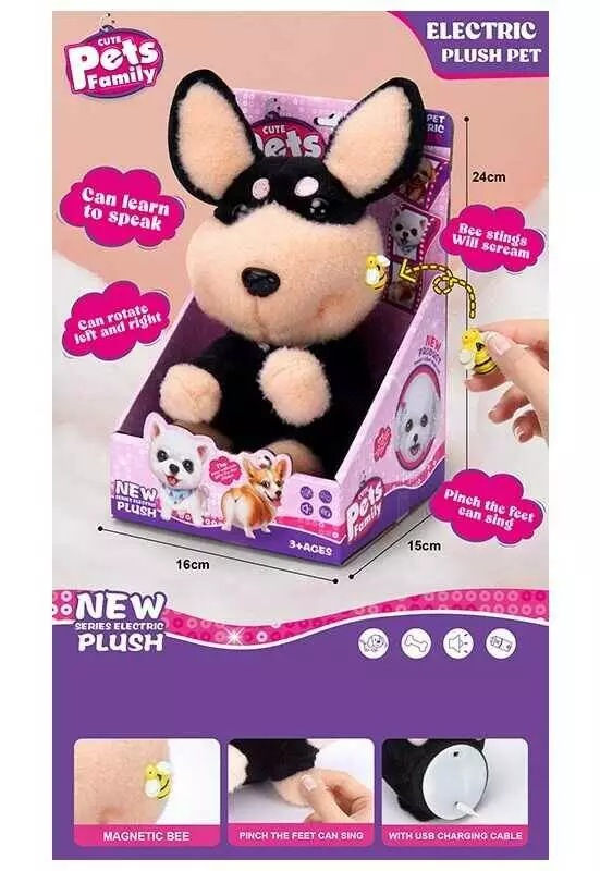 М`яка інтерактивна іграшка 667-96 "Pets Famili" (60) “Песик”, музична, рухається, повторюшка, магнітна бджілка, USB-кабель, в коробці