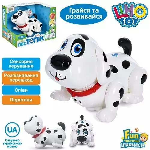 Фотография 1 товарной позиции интернет-магазина детских игрушек www.smarttoys.com.ua Собака FT 0032 Топик, інтерактивна, сенсорний, муз.(укр.), світло, бат., кор., 27-20-15см.