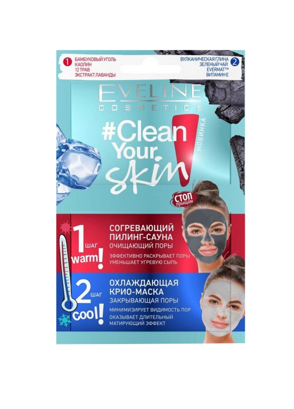 Согревающий пилинг-сауна очищающая поры+Охлаждающая крио-маска закрывающая поры CLEAN YOUR SKIN 2*5мл (5901761998580)