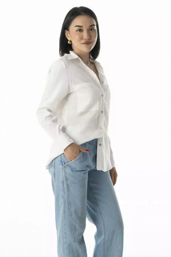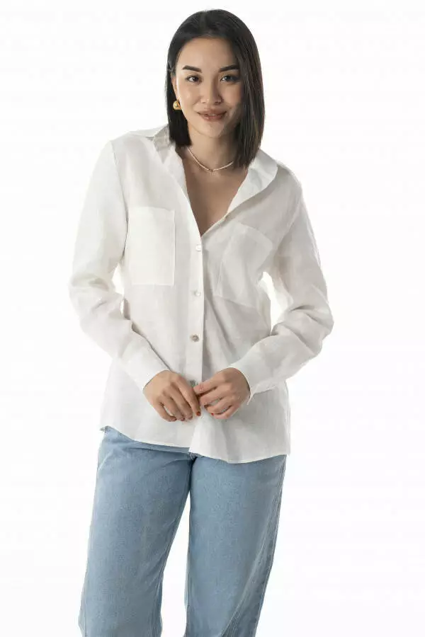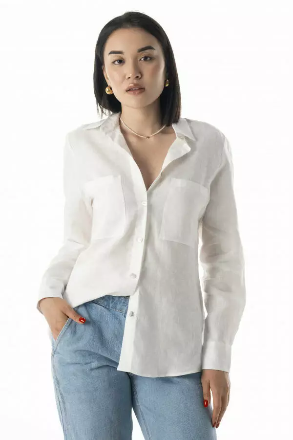 • Тип модели: Сорочка жіноча класична лляна з кишенями