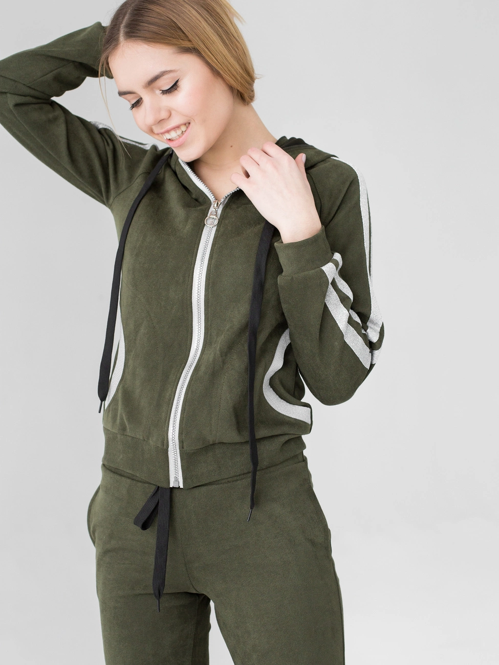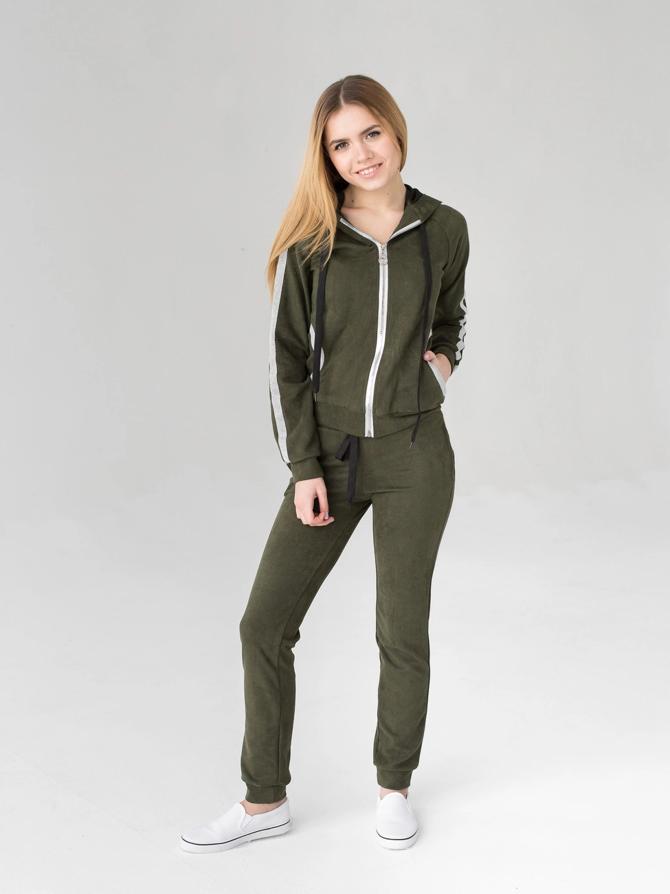 Женский костюм Билл выполнен из ткани твид высокого качества. Костюм состоит из кофты и брюк. Кофта с длинным рукавом, застегивается на молнию, по бокам карманы, есть капюшон. Брюки пояс на резинке, к низу на манжетах, по бокам карманы. Костюм отлично подойдет для ежедневной носки, прогулок, для работы. В нем Вы будите себя чувствовать легко и комфортно. Сочетать с обувью на низком ходу.