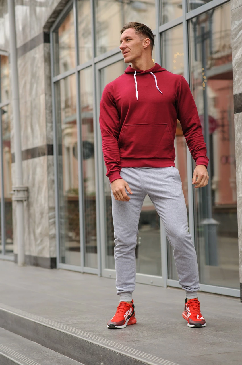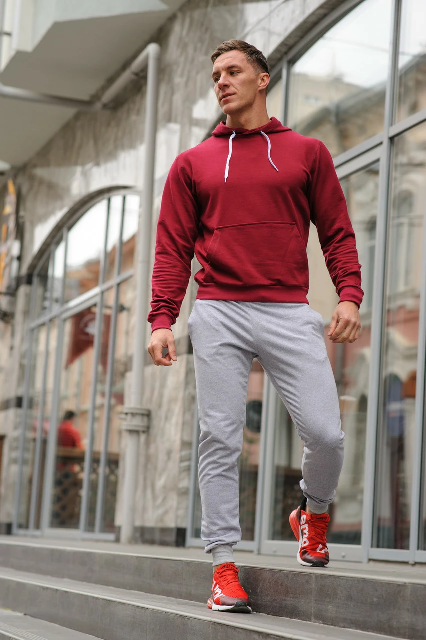 Спортивный костюм мужской весна-лето-осень (бордовая худи + серые штаны)