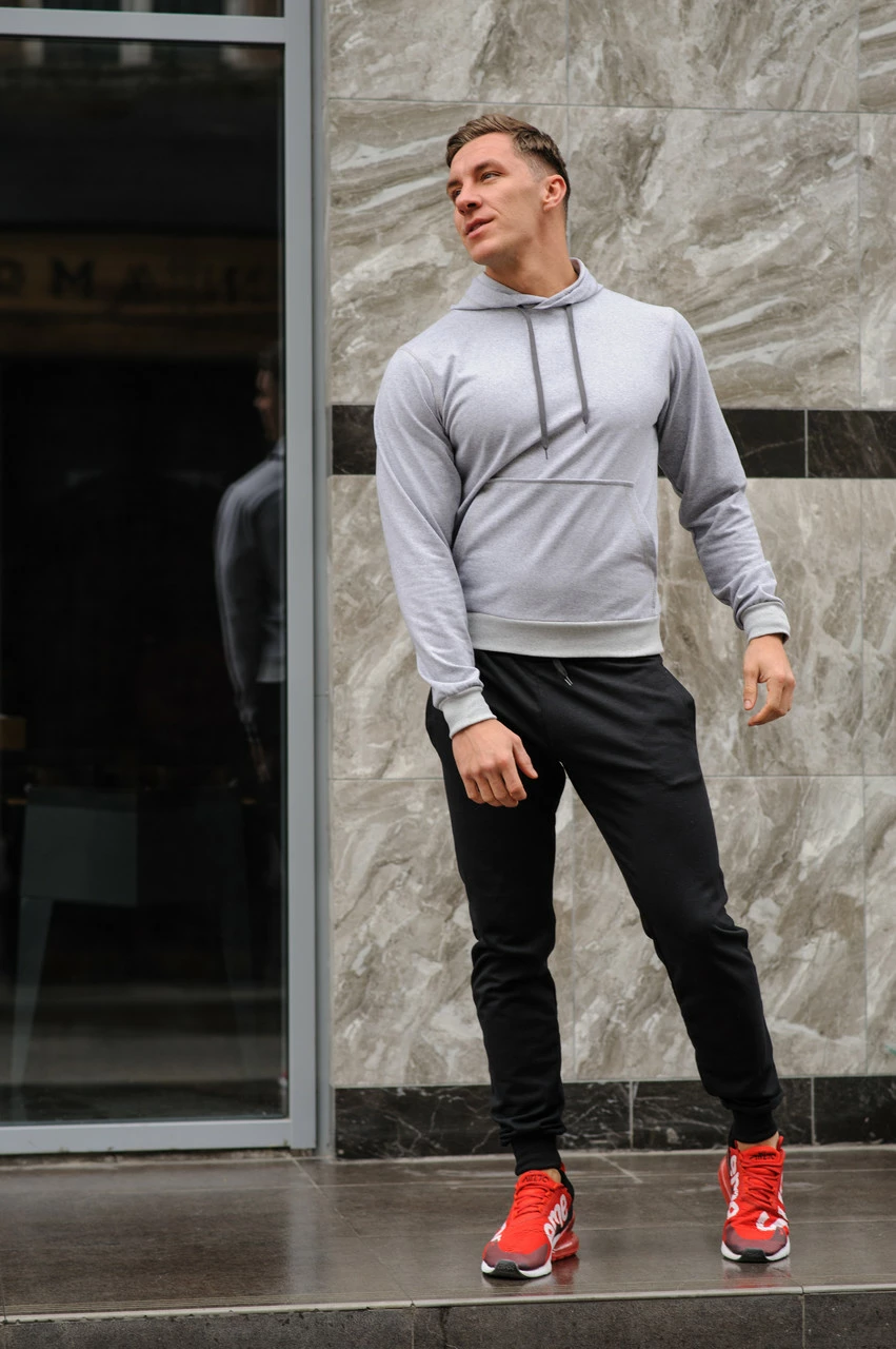 Спортивный костюм мужской весна-лето-осень (серая худи + черные штаны)