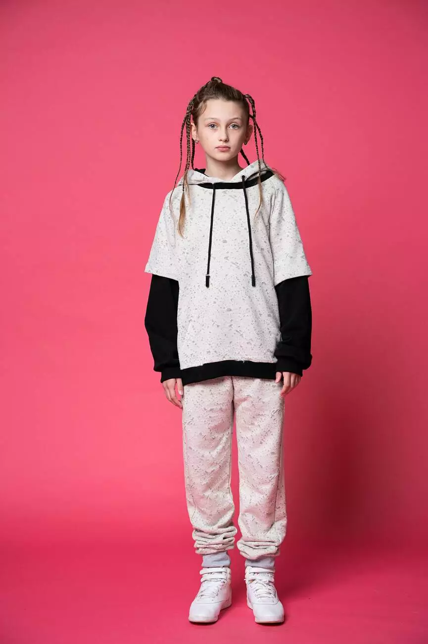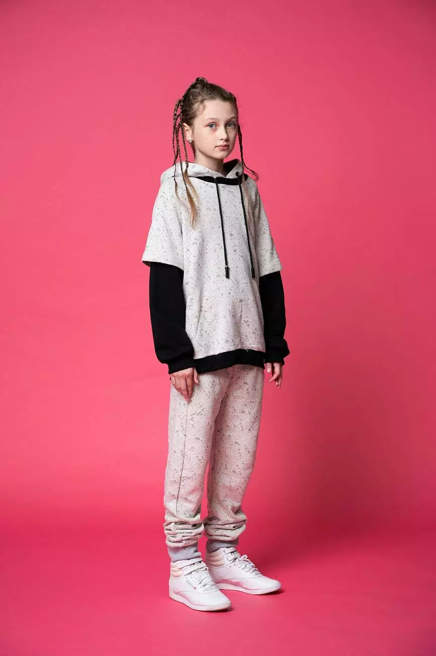 - оверсайз. Кофта із глубоким капюшоном. Контрасні рукава. Брюки