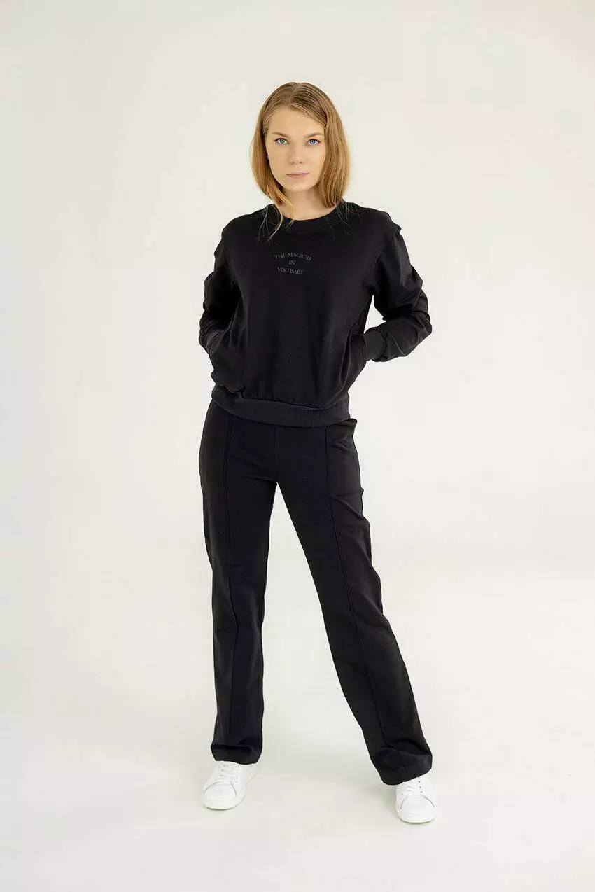 будь-якої пори року Жіночий костюм зі світшотом і прямими штанами —