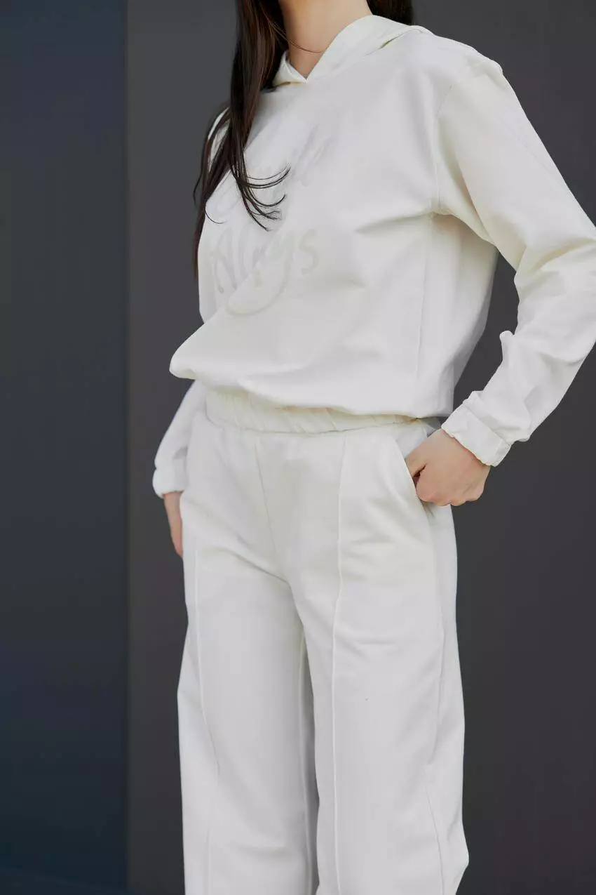 Комплект складається з об’ємного худі з капюшоном і прямих штанів,
