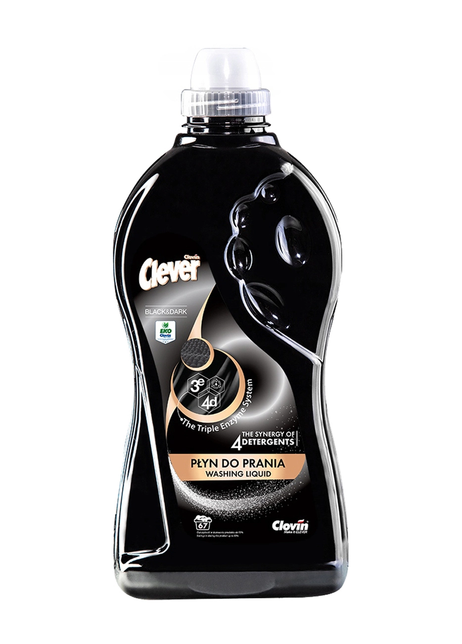 Clever Black & Dark – это эффективная антибактериальная жидкость для стирки, которая удаляет загрязнение и устраняет неприятные запахи. Сила трех ферментов и четырех моющих средств гарантирует идеальный результат, независимо от того, является ли это машинной или ручной стиркой. Специальная формула облегчает дозировку и позволяет провести 67 стирок, что делает продукт очень экономичным продуктом. Даже небольшое его количество сделает белье средней загрязненности чистым и свежим. Его антибактериальная формула эффективно уничтожает микробы на любой одежде, в данном случае на черной или темной одежде. Из-за негустой консистенции жидкость отлично растворяется в воде, смывая мельчайшие элементы моющего средства и не оставляя разводов. Clever Black & Dark – это специализированная жидкость для стирки, разработанная с учетом комфорта потребителей. Он будет работать при каждой стирке. Сохраняет одежду в черном цвете и, в зависимости от варианта стирки, отлично справляется как с хлопчатобумажной, так и с синтетической одеждой. Чтобы ваша одежда оставалась черной дольше, используйте антибактериальную жидкость Clever Black&Dark.