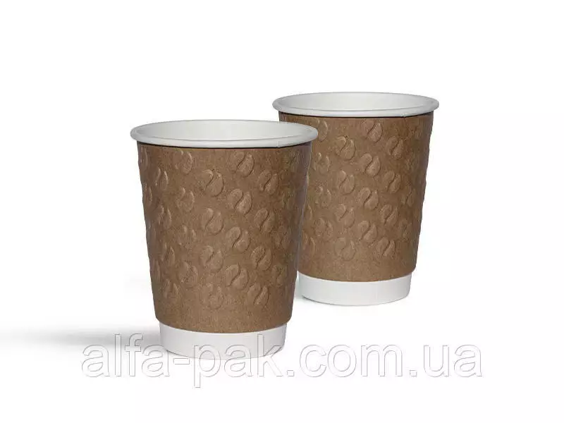 внешним видом. Стакан белый c тиснением "Кофейные зерна" крафт 180