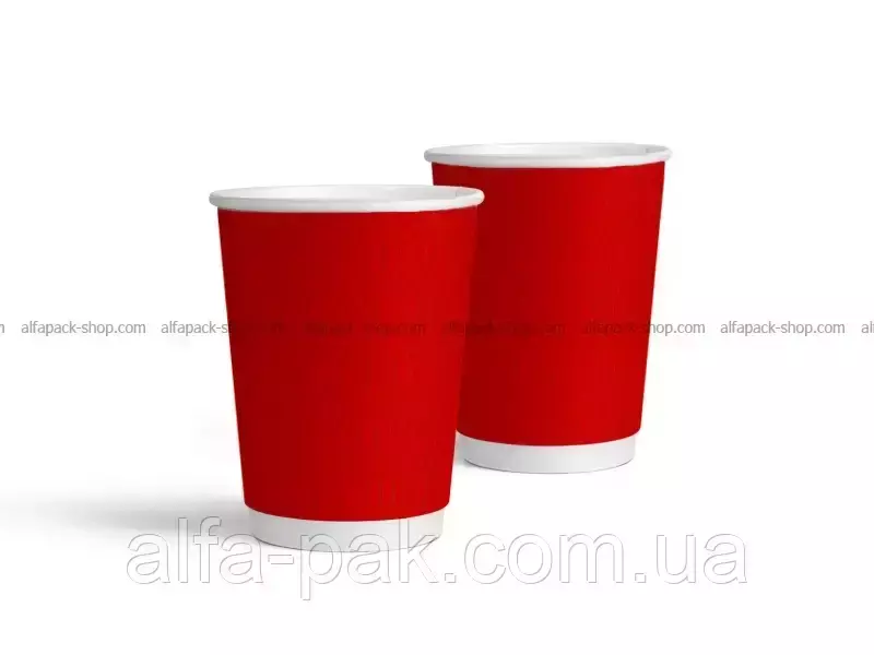 Стакан белый гофрированный красный 180 мл S-волна популярная тара