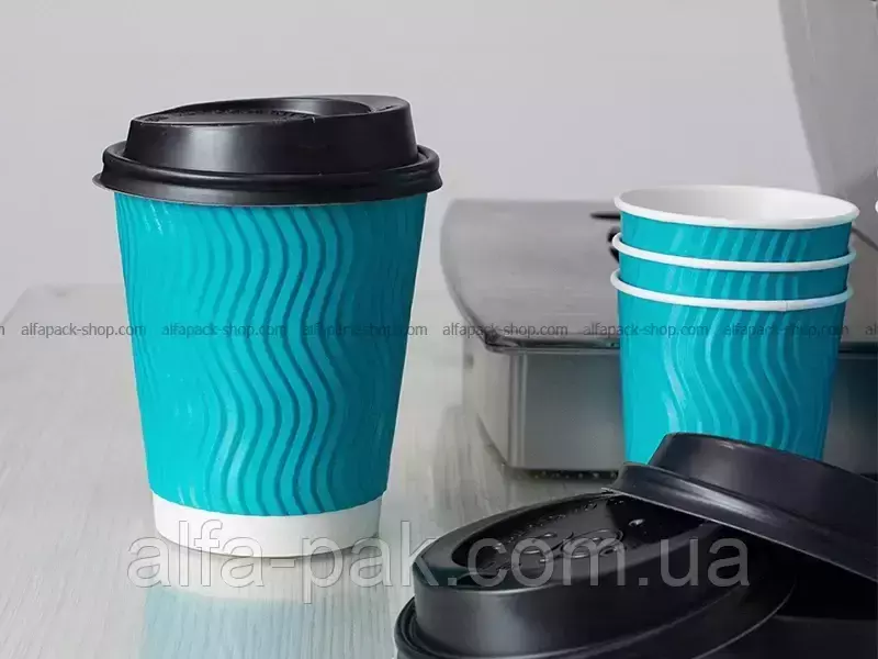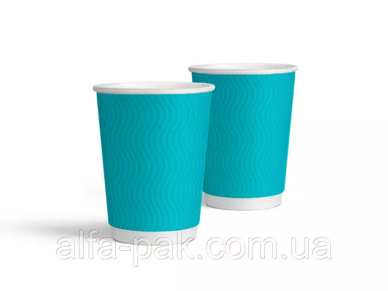 Стакан белый гофрированный бирюзовый 180 мл S-волна популярная тара