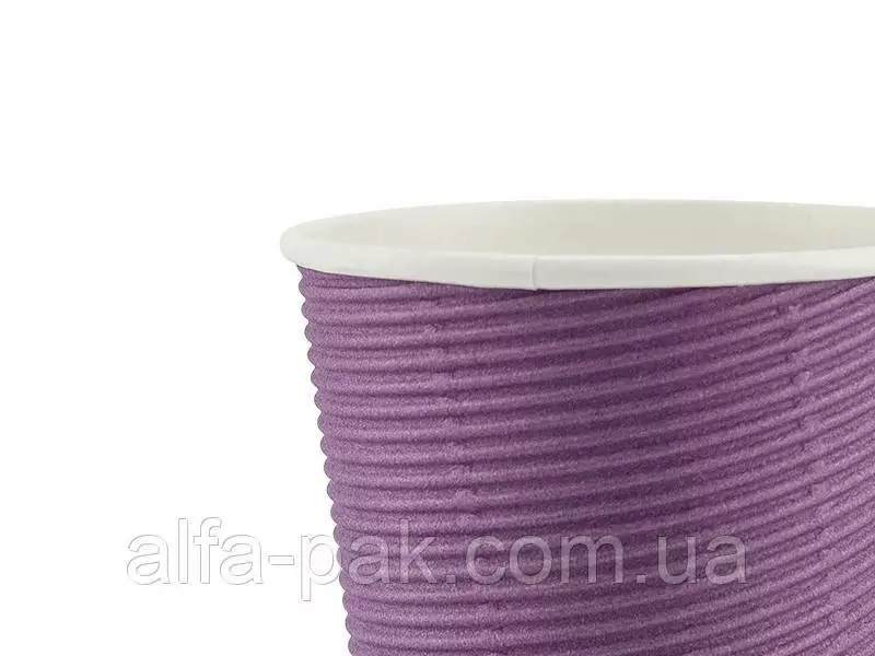 Стакан белый гофрированный лаванда 180 мл F-волна горизонтальная